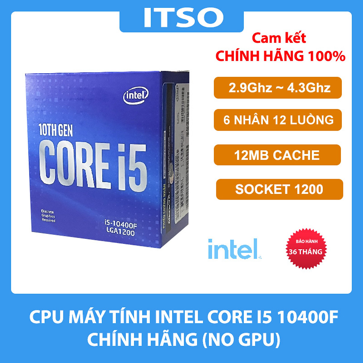 - Mã sản phẩm: I5 10400F (No VGA Onboard, cần có VGA rời để chạy)