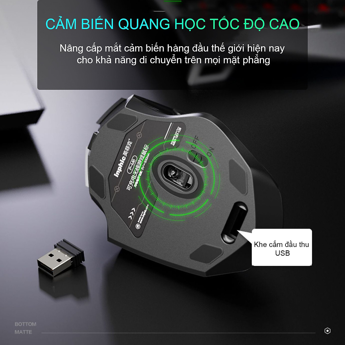 - Cảm biến quang học tốc độ cao nhờ nâng cấp mắt cảm biến quang mới nhất, di chuyển ổn định trên nhiều mặt phẳng