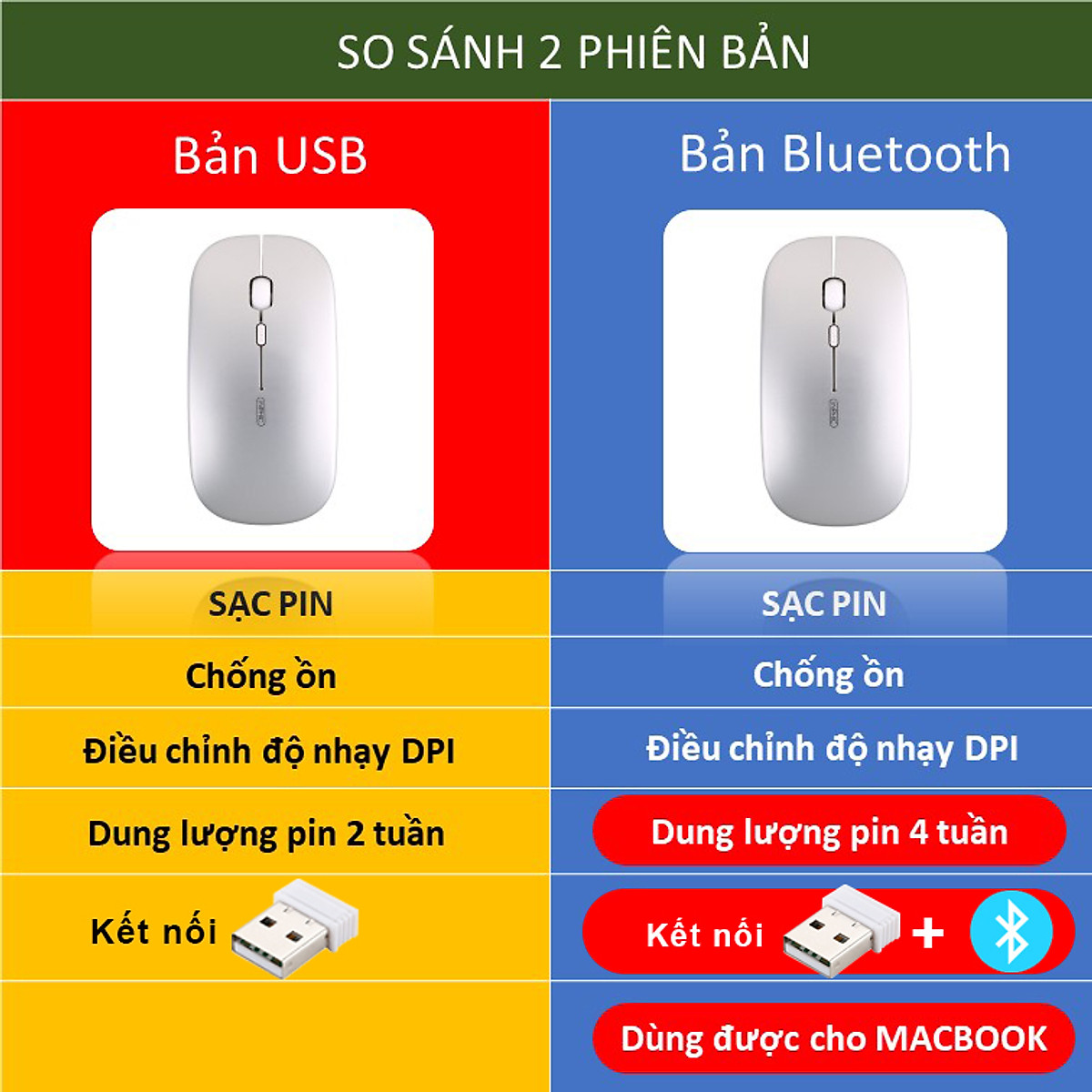 CHÚNG TÔI CÓ 2 PHIÊN BẢN CHUỘT BLUETOOTH KHÁC NHAU BAO GỒM:
