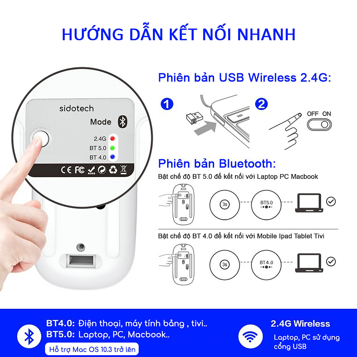 ƯU ĐIỂM NỔI BẬT CHUỘT KHÔNG DÂY BLUETOOTH SẠC PIN SIDOTECH PM1